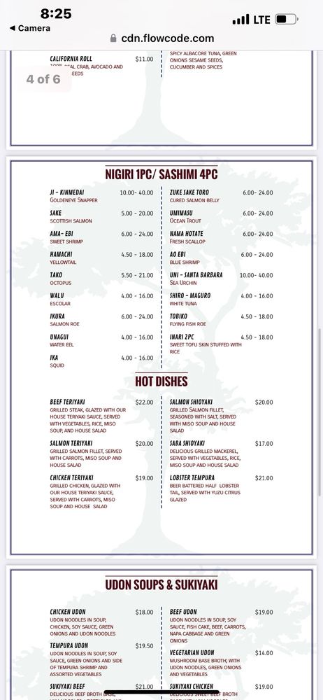 Nigiri (pc) with choice of spicy tuna roll/California roll or salmon avocado roll and miso soup.